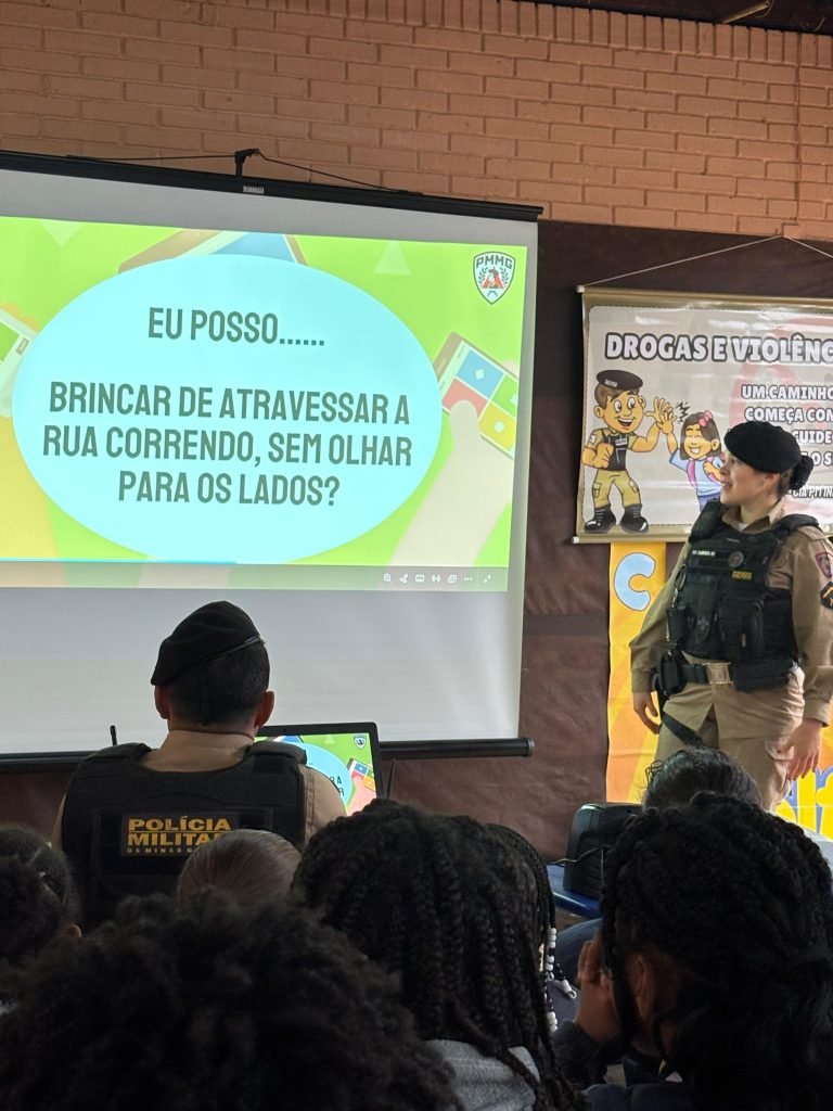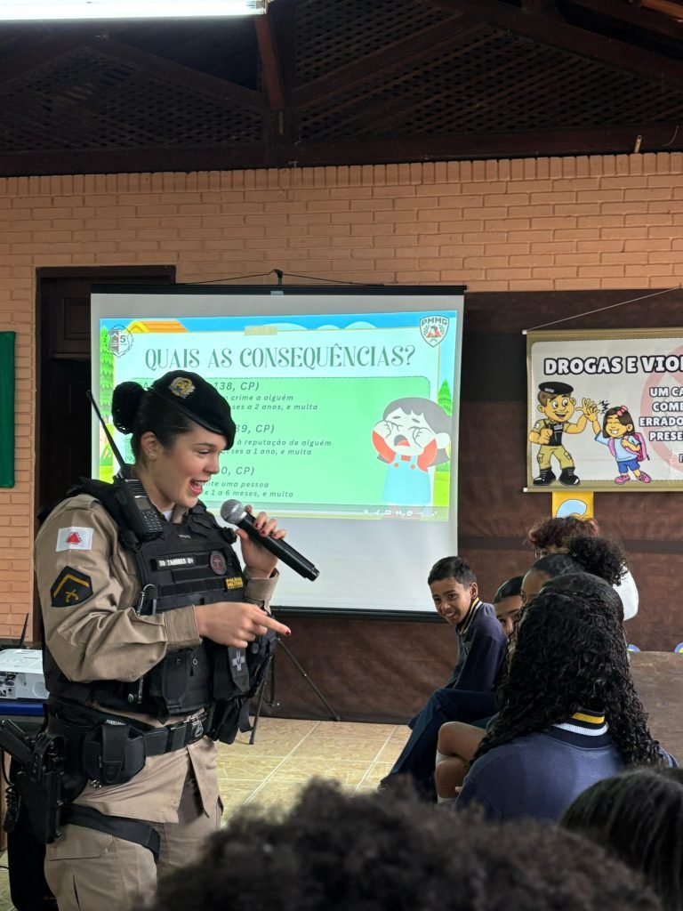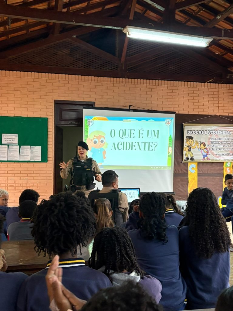 Nesta terça-feira, Policiais Militares da 17ª CIA PM IND, realizou uma palestra educativa na Escola de Caxambu, abordando o tema “Violência e Acidentes: Causas e Consequências”.