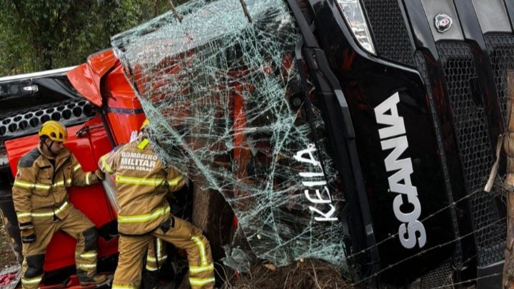 Conforme solicitante, caminhão saiu da pista e caiu em uma ribanceira. Três viaturas do Corpo de Bombeiros estiveram no local. Duas vítimas estavam dentro do caminhão. Uma das vítimas, do sexo masculino, estava em óbito. A vítima do sexo feminino, que está grávida de quatro meses, ficou com a perna esquerda presa a partes metálicas do veículo.
