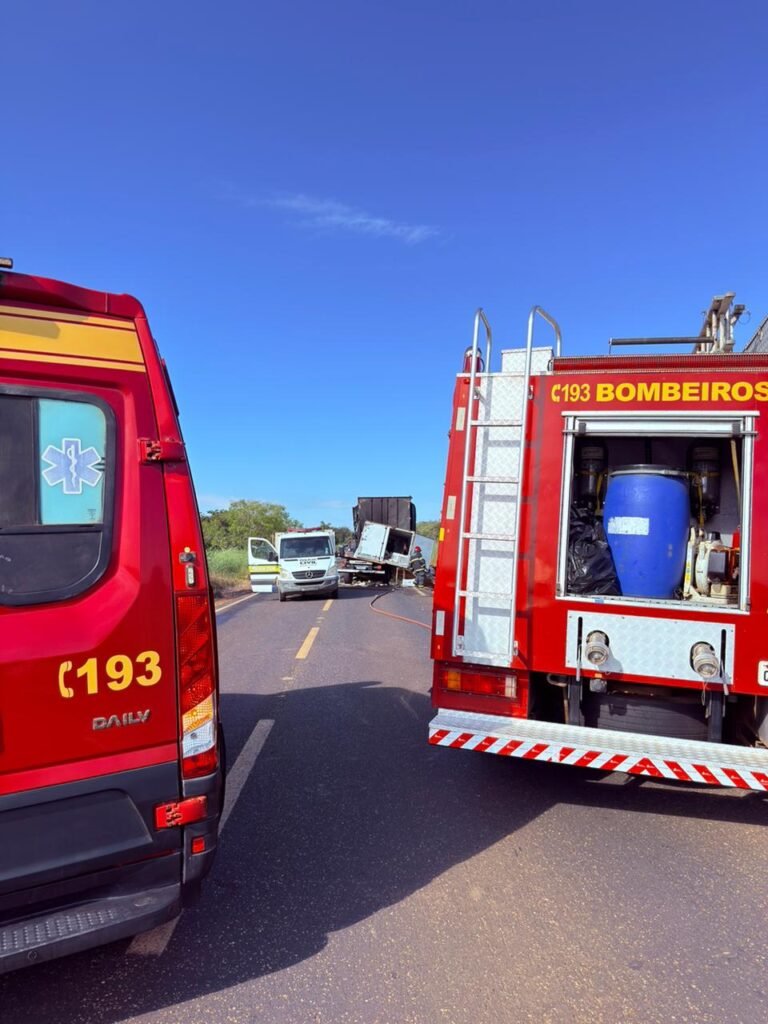 Guarnições do Pelotão de Sacramento atenderam ocorrência de colisão entre caminhão e caminhonete. O caminhão estava carregado de sucata e, durante o deslocamento na rodovia, a parte cargueira começou a pegar fogo, possivelmente, ocasionado por superaquecimento do sistema de freios. Logo em seguida, uma caminhonete F-350, que seguia no mesmo sentido, colidiu na traseira do caminhão em chamas. Dois homens que estavam na caminhonete – pai e filho, de 59 e 26 anos – ficaram preso às ferragens e morreram no local do acidente.