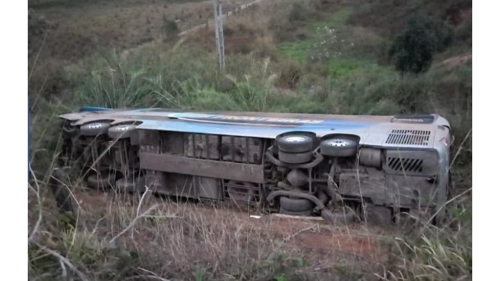 Na sequência do choque, o ônibus acabou perdendo o controle, saiu da pista e caiu numa ribanceira, de pelo menos 10 metros, às margens da rodovia.