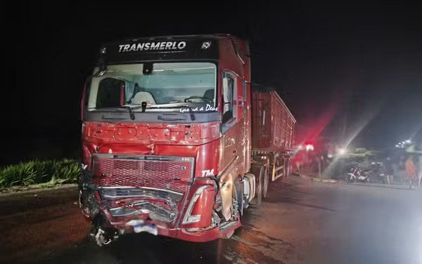 Colisão frontal entre veículo de passeio e carreta com duas vítimas fatais presas às ferragens na BR-459.