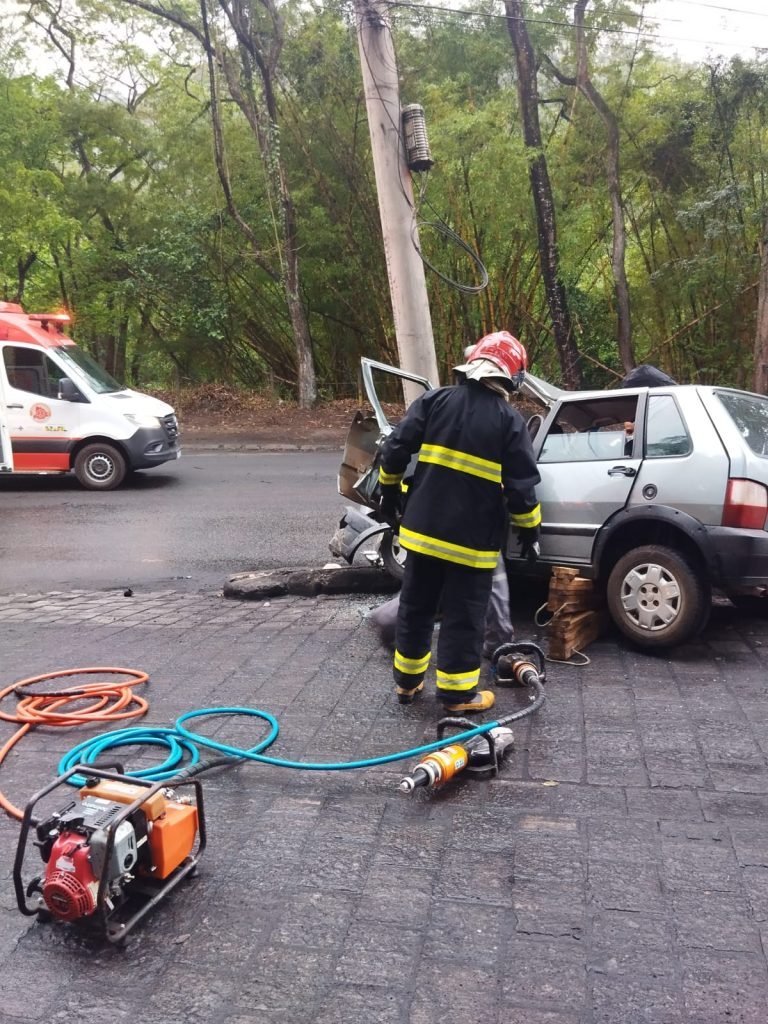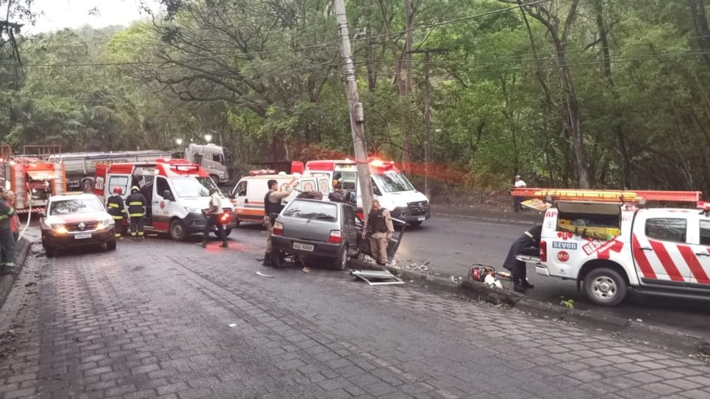 Na manhã deste sábado, às 05h01min, o Serviço Voluntário de Resgate (SEVOR) foi acionado para atender um grave acidente de trânsito na altura do bairro Santa Cruz, próximo ao Depósito de Carvão. Um veículo de passeio colidiu frontalmente com um poste, resultando em uma mobilização imediata de várias equipes de emergência.