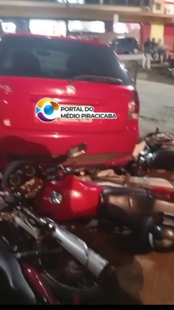 A ocorrência aconteceu em frente ao Supermercado Fraga e várias motocicletas foram atingidas pelo veículo.
