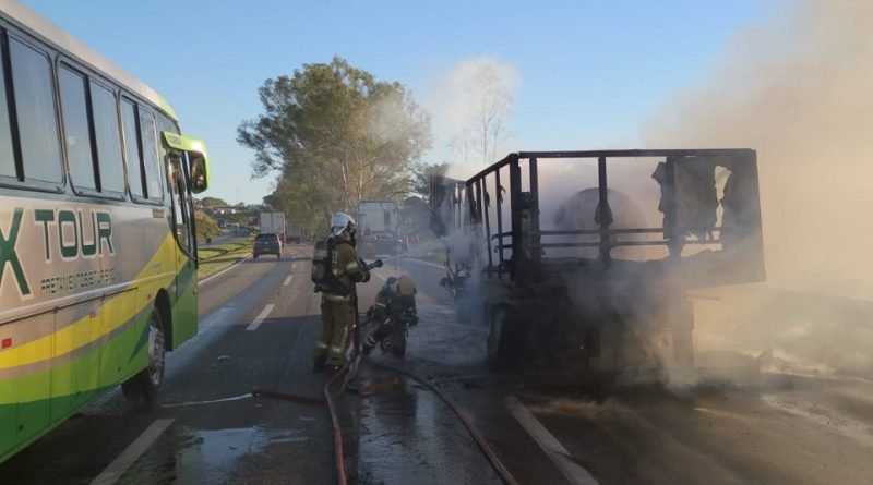 Na tarde de ontem (21), o Corpo de Bombeiros Militar de Minas Gerais foi acionado para atendimento a um incêndio em carreta no km 863 da BR-381, na altura da localidade de Algodão, sentido São Paulo.