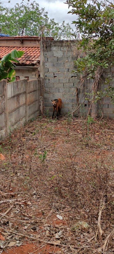 Um lobo-guará havia sido avistado no interior de um lote vago.