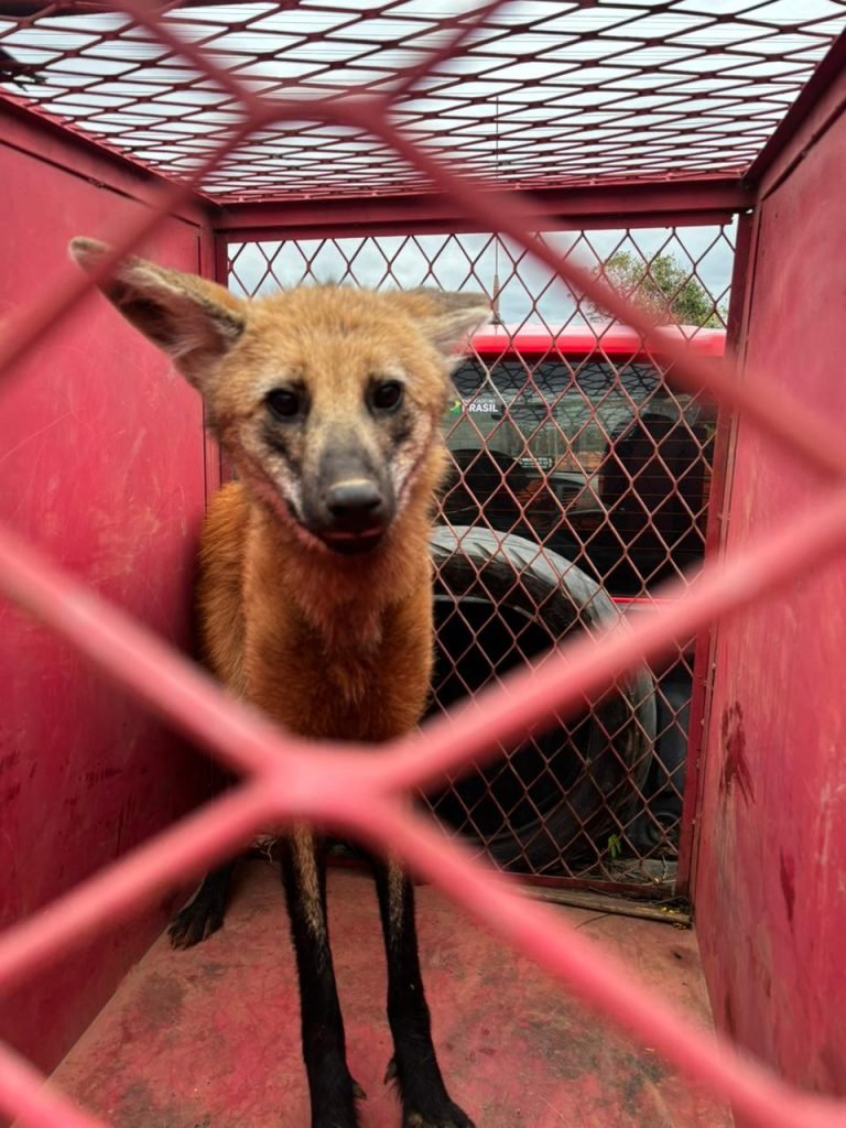 O atendimento contou ainda com o apoio da Polícia Militar, que já estava no local garantindo a segurança da população e do lobo até a chegada dos bombeiros.