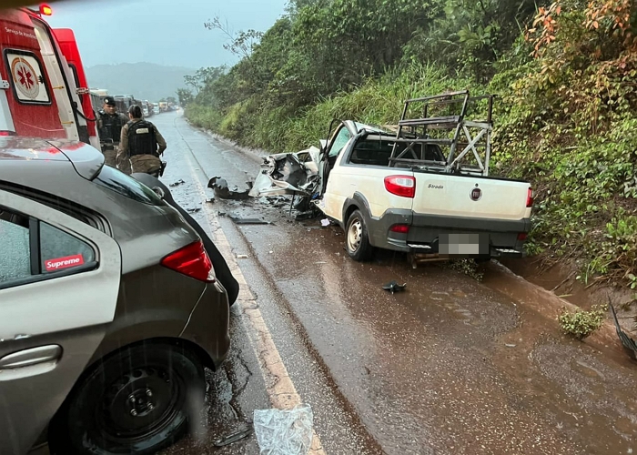 Foi constatado pelos militares que havia uma vítima em óbito no banco traseiro do Chevrolet Ônix e que o passageiro do Fiat Strada estava preso nas ferragens, porém consciente e orientado.