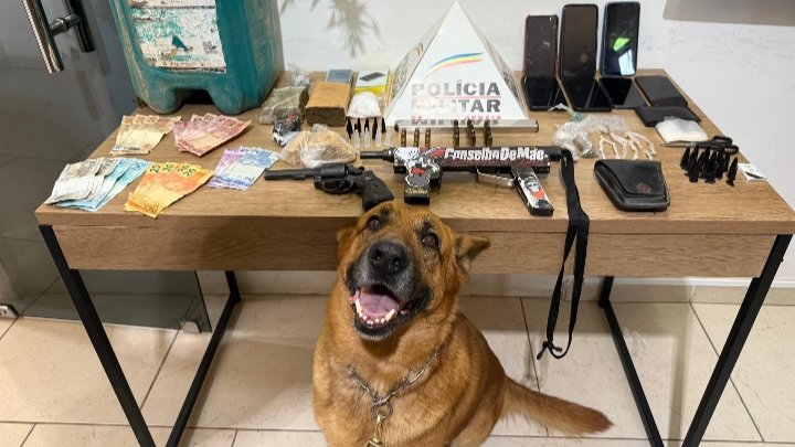 Belo Oriente: Cão Policial Lyon atua em operação, três elementos presos, drogas apreendidas, até sub-metralhadora foi apreendida