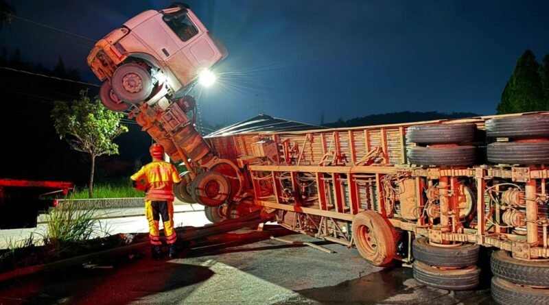 BETIM: CAMINHÃO TOMBA E MOTORISTA FICA RETIDO EM CABINE