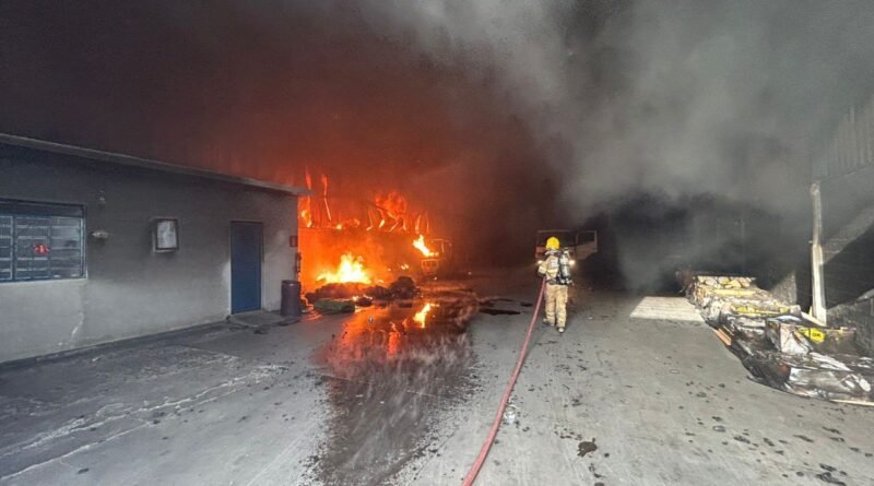 São 3 galpões vizinhos, sendo o incêndio iniciado na edificação central, na qual funcionava uma empresa especializada em pisos de borracha.