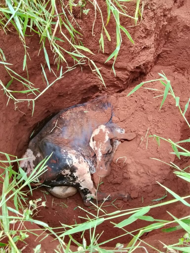 Diante da situação, a equipe de bombeiros e efetuou a construção de uma rampa de acesso e com a utilização de técnicas de salvamento terrestre e apoio de um trator, o animal foi retirado em segurança e deixado sob a responsabilidade do proprietário.