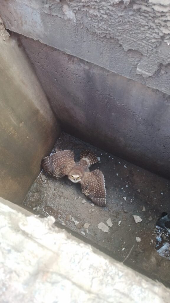 Bocaiuva: Resgate de coruja dentro de bueiro no estacionamento de supermercado (assista o vídeo)