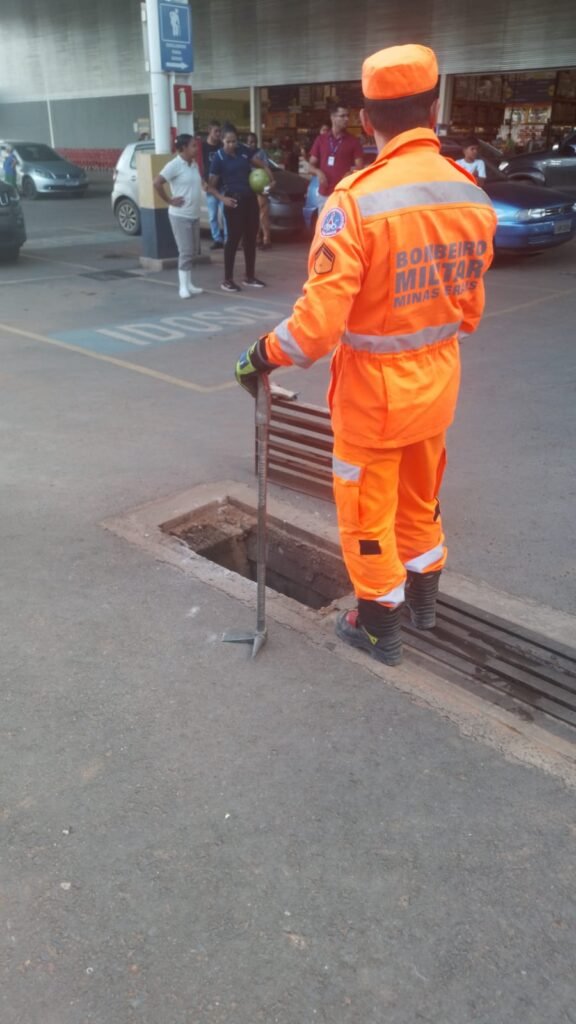 O solicitante relatou que se deparou com o animal, que estava preso no interior de um bueiro dentro do estacionamento do supermercado e imediatamente acionou o Corpo de Bombeiros.