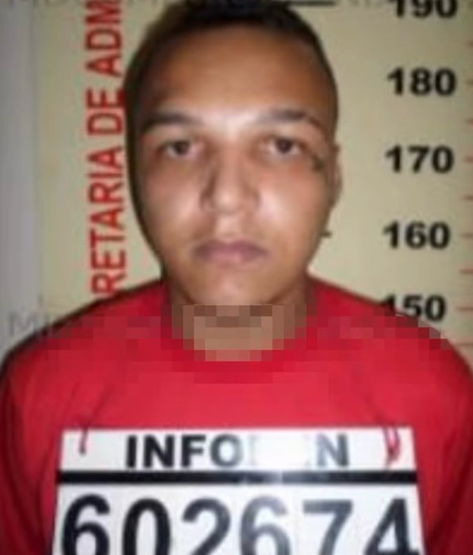 O suspeito estava usando uma blusa branca e de cabelo da cor rosa.