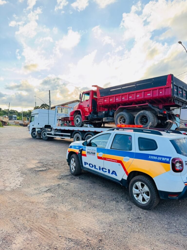 No dia 13/04/2026, por volta das 14 horas, a Polícia Militar recuperou um caminhão produto de furto e prendeu um autor por receptação, na zona rural de Bom Jesus do Amparo/MG.