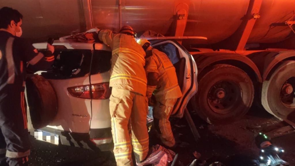 Segundo as primeiras informações repassadas pelo solicitante via 193, um veículo Ford Ecosport colidiu contra o último compartimento de um caminhão-tanque durante tentativa de travessia de pista. O carro de passeio ficou severamente danificado, com três pessoas presas às ferragens, sendo o motorista já em óbito confirmado no local.