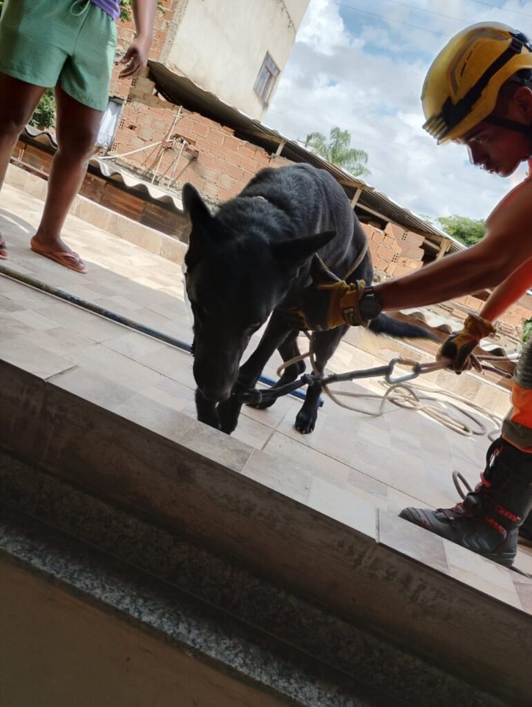 Apesar do cacho ficar preso na vala ontem, os bombeiros foram acionados somente nesta segunda-feira. O cachorro aparentava cansaço por ficar tantas horas preso na vala. Os militares precisaram romper um dos lados de uma parede para acessar o local onde o animal estava preso.