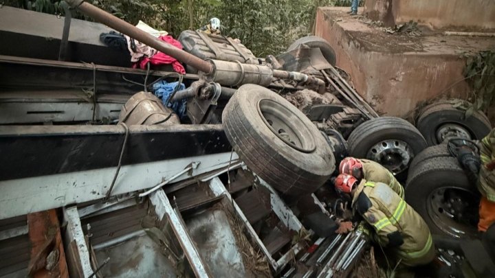 Queda da ponte com cerca de 25 metros de altura.