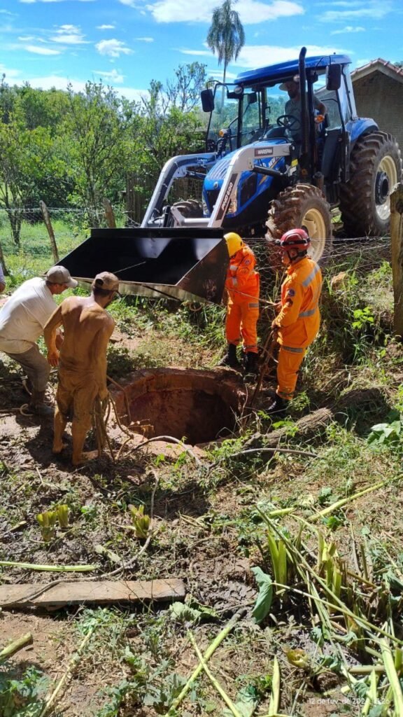 Os proprietários já haviam providenciado uma retroescavadeira para auxiliar na retirada do animal. A guarnição assumiu a coordenação da operação, realizando as amarrações técnicas adequadas e adotando todos os protocolos de segurança necessários para garantir a integridade do animal e dos envolvidos. Após a montagem do sistema de içamento e alinhamento das ações com o operador da retroescavadeira, o cavalo foi retirado com sucesso.