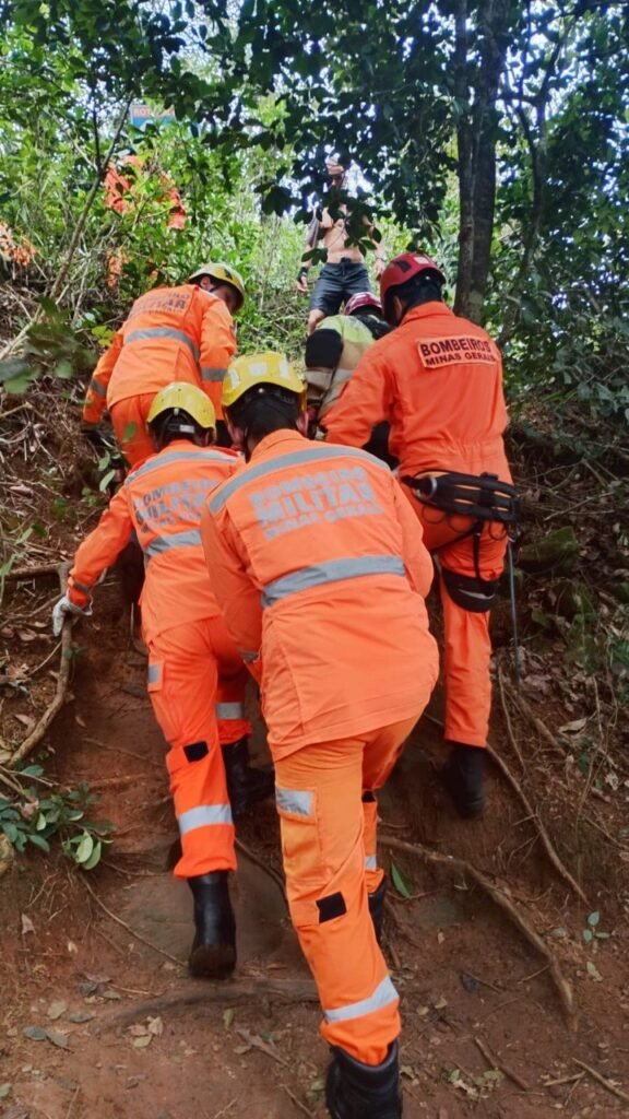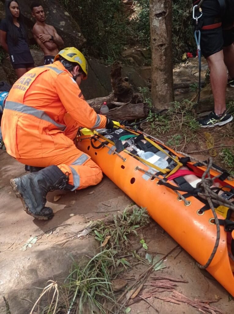 A vítima teria caído de uma formação rochosa e se encontrava ferida em local de difícil acesso.