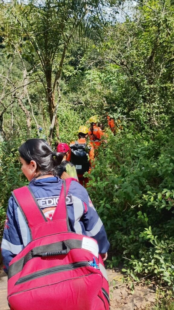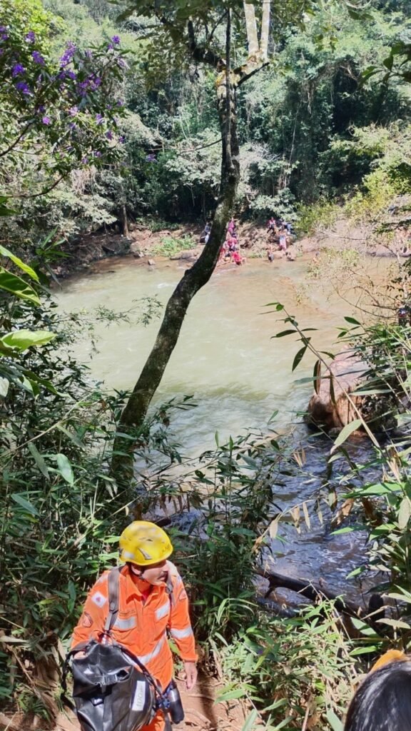 Acidente ocorrido durante a realização de uma trilha na região da Cachoeira da Jangada.