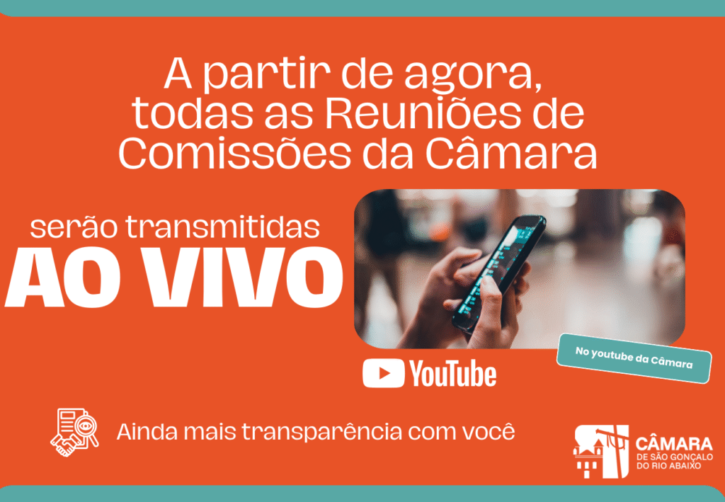 As comissões permanentes desempenham papel fundamental no processo legislativo, sendo responsáveis pelas análises, debates e emissões de pareceres sobre matérias de interesse do município. As transmissões poderão ser acessadas gratuitamente pelo canal oficial da Câmara Municipal de São Gonçalo do Rio Abaixo no youtube, onde os vídeos também permanecerão disponíveis para consulta posterior, assegurando amplo acesso à informação pública.