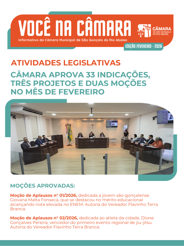 Câmara Municipal de São Gonçalo do Rio Abaixo divulga informativo de fevereiro