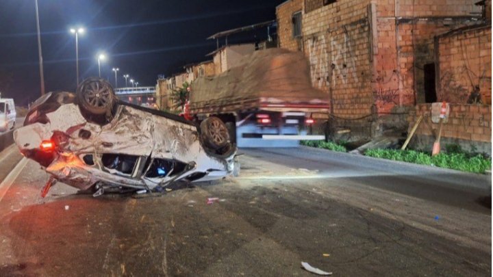 No local, foi constatado o capotamento de um veículo com três ocupantes. Inicialmente, havia suspeita de atropelamento, posteriormente descartada após verificação de que todas as vítimas estavam dentro do automóvel no momento do acidente.