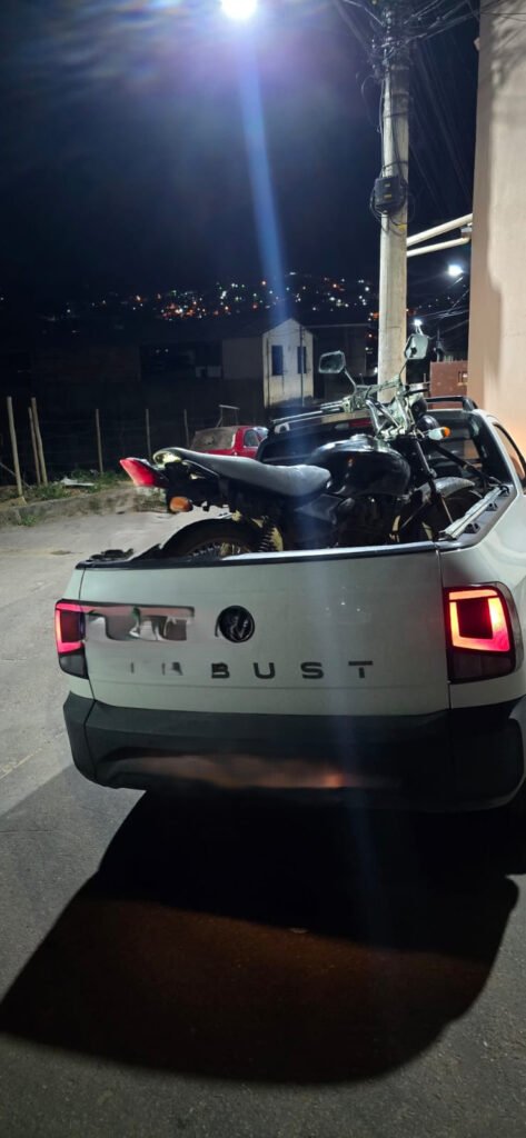Após consulta ao sistema informatizado, foi constatado que a motocicleta possuía registro de furto/roubo. Diante dos fatos, o veículo foi recuperado e removido para o pátio credenciado.