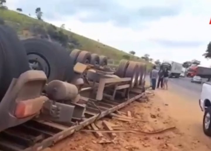 Uma carreta saiu da pista e capotou. O acidente aconteceu agorinha a poucp, por volta de 17 horas da tarde de hoje, na na localidade conhecida como Serrs do Cachoeirão.