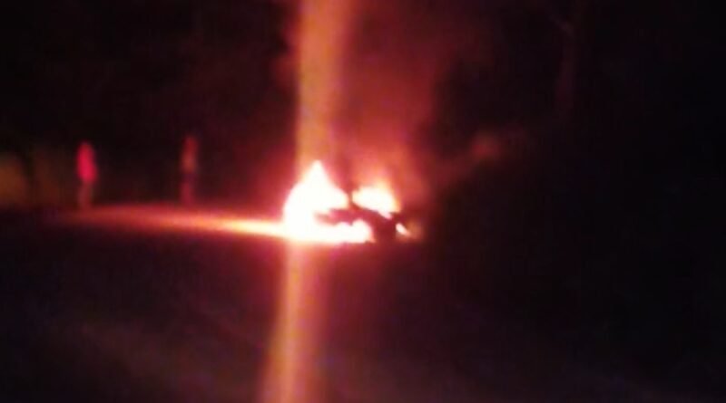 Barao de Cocais MG 08 de fevereiro de 2023. Na noite dessa quarta-feira, um veículo pegou fogo na estrada que liga Barão de Cocais à rodovia BR-381.