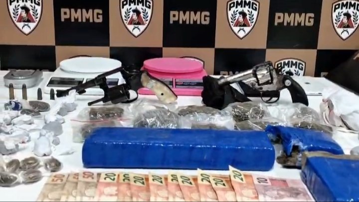 Nas buscas, foram apreendidos dois revólveres calibre .32, munições e grande quantidade de entorpecentes. Em diligência complementar, foram localizadas ainda mais porções de maconha prontas para o comércio.