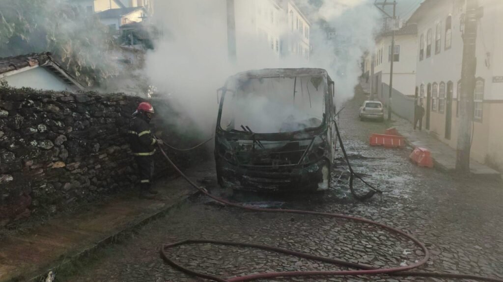 Um ônibus que fazia a linha Santa Cruz-Rodoviária pegou fogo próximo à edificação histórica de Ouro Preto. O sinistro ocorreu na rua Doutor Alfredo Baeta, 16 – bairro Antônio Dias – ao lado da igreja Nossa Senhora da Conceição. Os bombeiros conseguiram debelas as chamas, mas o ônibus ficou completamente queimado.