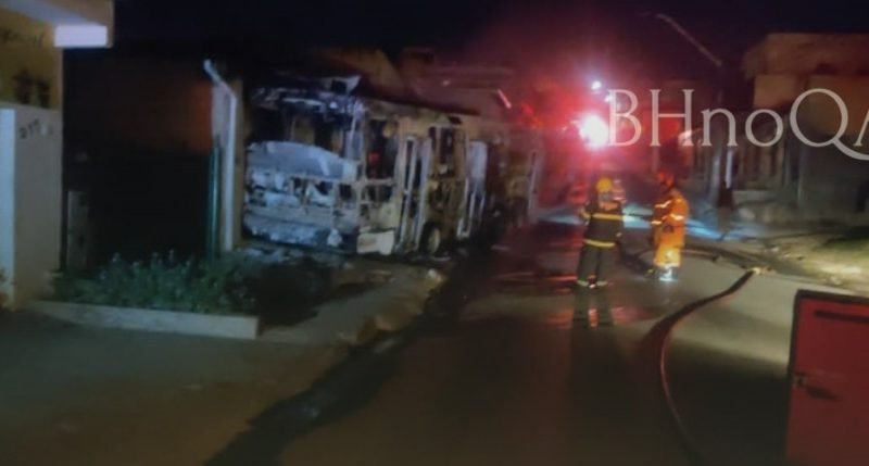 Um incêndio destruiu completamente um ônibus na noite dessa quinta-feira (09), no bairro San Genaro, em Ribeirão das Neves, região metropolitana de Belo Horizonte.