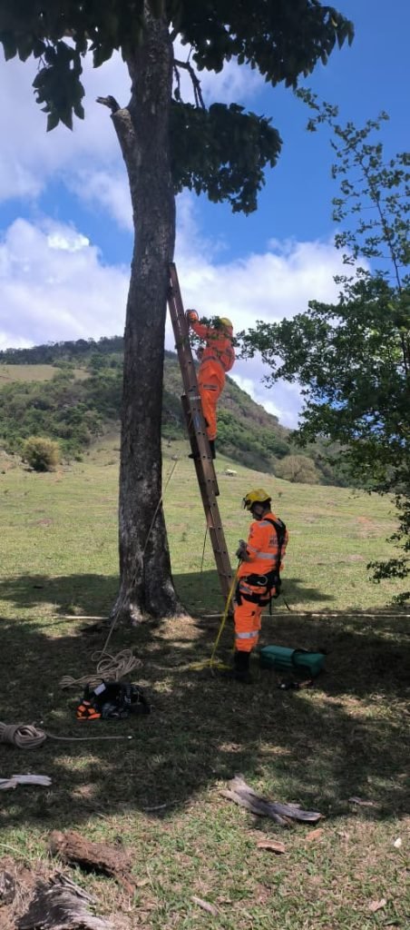 Bombeiros de Itajubá foram acionados para realizar o resgate de uma gata que se encontrava no alto de uma árvore, a aproximadamente 20 metros de altura, na zona rural do município de Gonçalves.