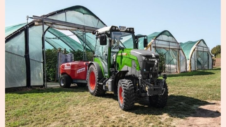 Entre as novidades da Fendt Future Zone, como é conhecido o estande da fabricante na feira que acontecerá em Hannover, na Alemanha, destacam-se as atualizações do trator elétrico Fendt e100 Vario, equipado na dianteira com uma bateria adicional da GreenIng, capaz de prolongar a autonomia e a eficiência energética, além de uma semeadora de precisão na parte traseira que utiliza o processo de plantio intercalado, que produz um efeito positivo na saúde do solo.