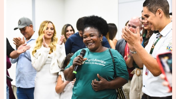 Além dos resultados operacionais, o Agroamigo gera impactos sociais relevantes ao promover a autonomia econômica das mulheres rurais, estimular a permanência no campo e contribuir para a melhoria das condições de vida nas comunidades atendidas, fortalecendo a inclusão produtiva e o desenvolvimento sustentável dos territórios.Cliente Ana Maria de Jesus Rosa na inauguração da agência do Banco do Nordeste em Guanhães. Foto: Bruna Lorena.