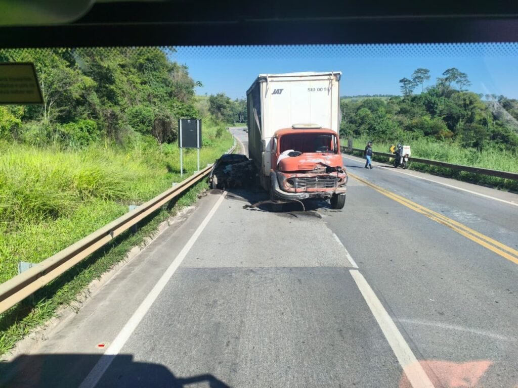 Formiga: Colisão frontal entre automóvel de passeio e caminhão, com vítima fatal presa às ferragens