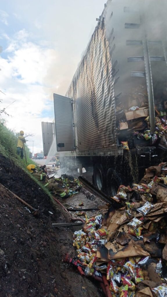 Grande BH: Carreta carregada com salgadinhos pegou fogo na tarde de hoje