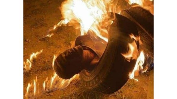 Um homem morreu queimado no microondas ou seja seu corpo foi colocado em pneus de borracha depois incendiado enquanto ele ainda estava vivo.