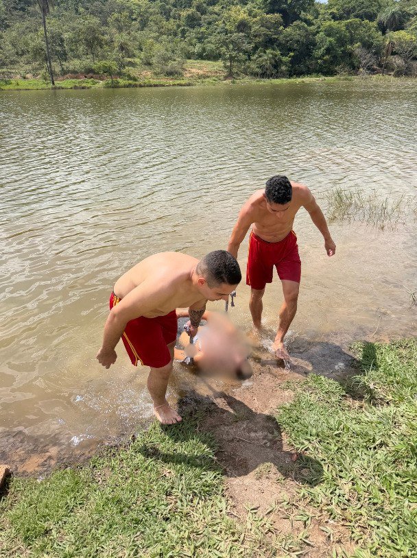 Militares do 2º BBM atenderam ocorrência de afogamento em lagoa de Esmeraldas. Conforme solicitante, dois homens, aparentemente embriagados, entraram na lagoa e um deles se afogou. O outro homem que não se afogou ficou por um tempo chamando o amigo que havia submergido.
