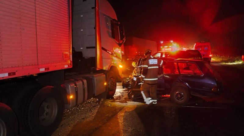Ibiá MG: colisão entre carro e carreta com vítimas fatais presas às ferragens