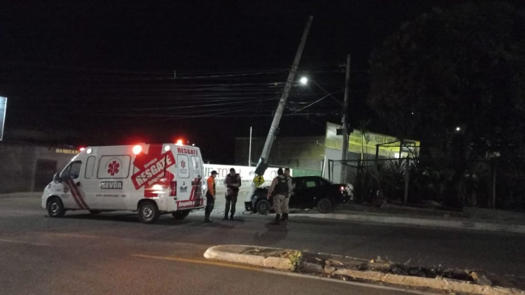 Onde o condutor de um veículo Corolla, morador do bairro Loanda, identificado como E.C.L de 65 anos de idade, perdeu o controle do veículo e colidiu frontalmente contra um poste, na esquina das avenidas.