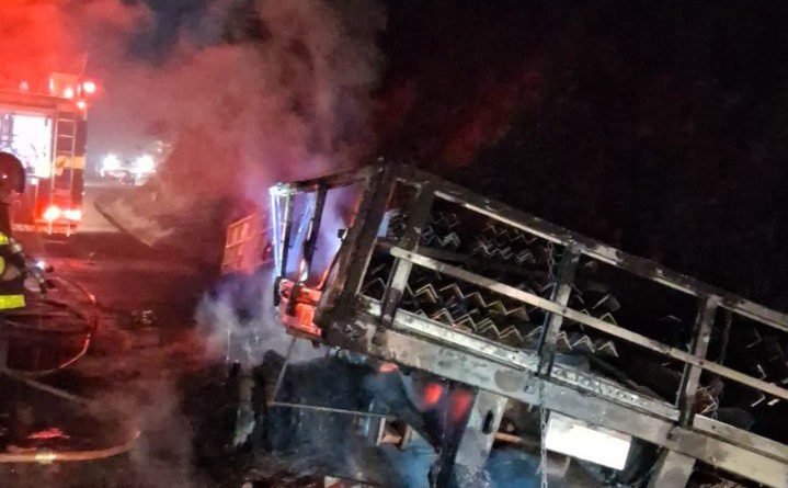As chamas se propagaram também para a vegetação às margens da rodovia. A equipe atuou com rapidez e eficiência, extinguindo o fogo no semirreboque e, em seguida, no foco de incêndio florestal. Não houve vítimas.