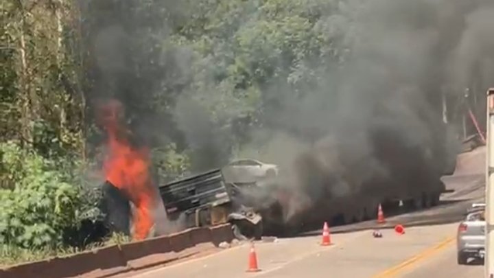 ITABIRITO: colisão entre carreta e moto deixou uma vítima fatal, ocorrência em andamento (assista o vídeo)