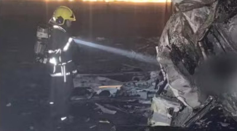 Após o impacto, o caminhão com placas de Cláudio se incendiou e o fogo se espalhou para a vegetação marginal.