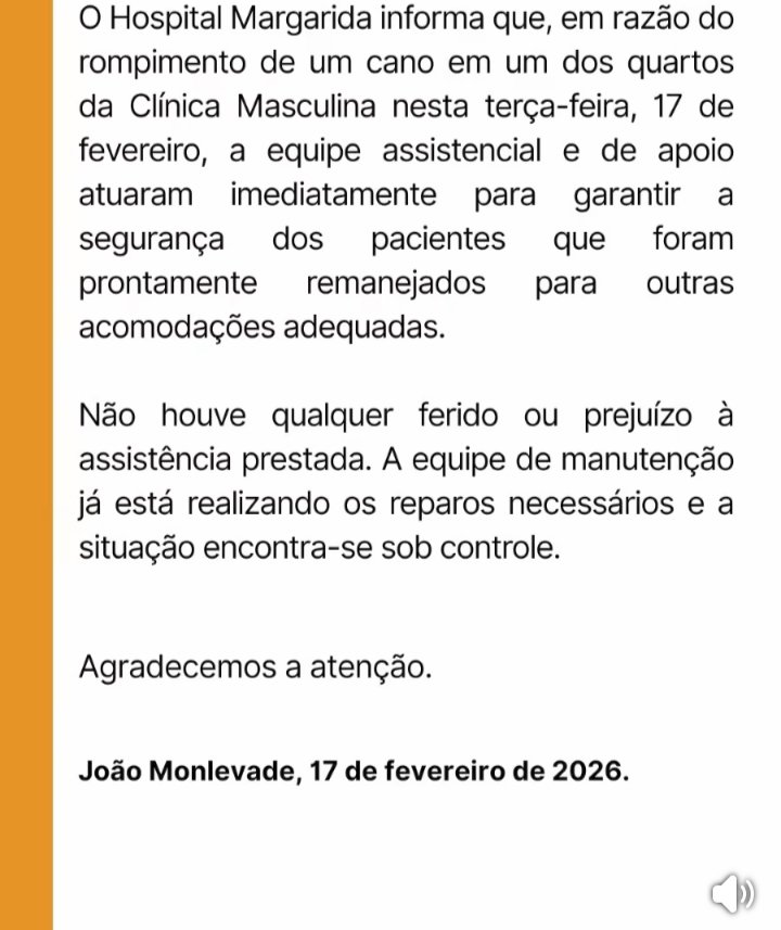 O Hospital Margarida emitiu uma nota sobre a situação.