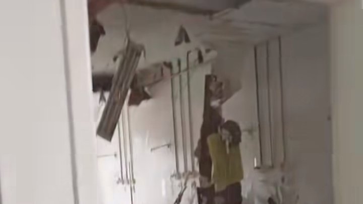 Mas segundo informações, o que houve realmente foi um vazamento de água, e isto comprometeu a estrutura do forro do hospital.