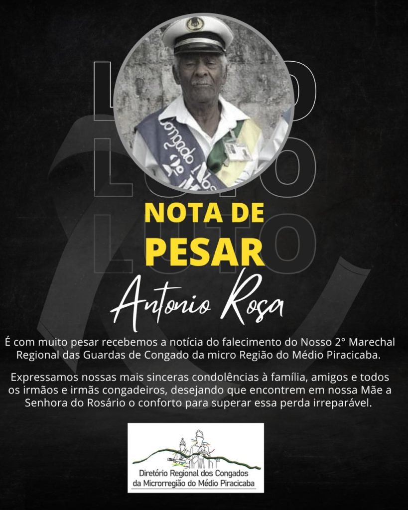 Sr Antônio era o 2° Marechal Regional dos Guardas de Congado da Micro Região do Médio Piracicaba.