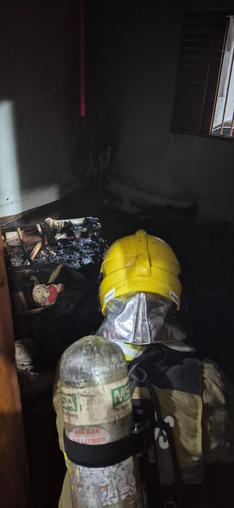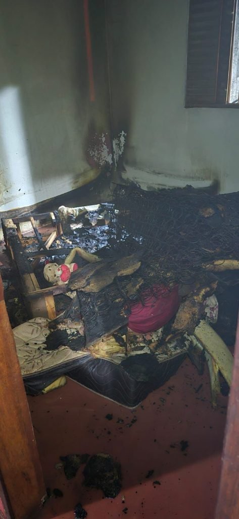Ao chegar ao local, os militares encontraram um dos quartos da casa em chamas, com foco concentrado sobre a cama.